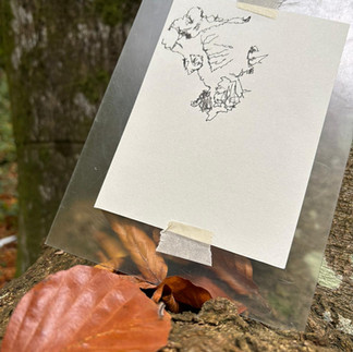 Arrêt sous une belle lumière d'octobre pour capter les couleurs, les matières, les textures, les énergies et le souffle. Une séance pratique du dessin sur le vif sur le détail où tout le monde dessine ses impressions, ses ressentis, ses interprétations. Puis petit encas frugal partagé au coin du feu avant une pratique de yoga.